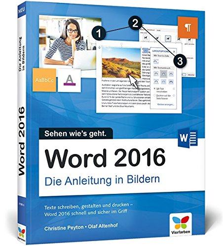 Buchtitel : Word 2016: Die Anleitung in Bildern. Bild für Bild Word 2016 kennenlernen. Komplett in Farbe. Für